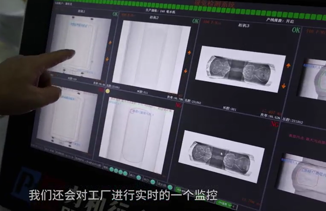 “透明”是这套新标准的另一大支柱,且绝不流于形式。“在生产环节,工厂实现了对关键工位的实时无线监控,从原材料投放到生产过程,再到次品处理,全程可视。”东方甄选卫生巾工厂负责人介绍。