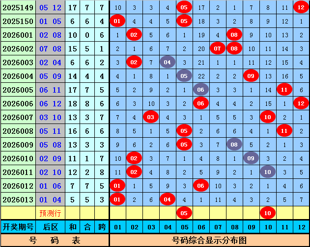 后区号码分析:第014期历史同期开奖中,后区两码一大一小开出11次,全大开出3次,全小开出5次,本期后区预计出现一大一小奖号,参考号码02、05、08、10。