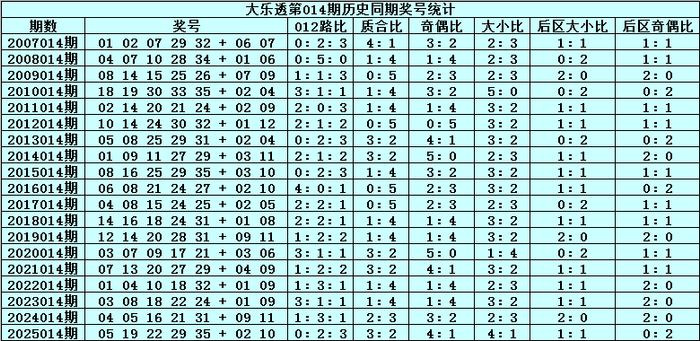 体彩大乐透第2026014期历史同期开奖号码分析: