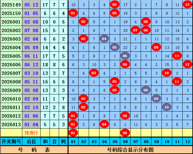 后区分析:在第014期历史同期开奖中,和值大小为4:15,跨度奇偶比为9:10,本期后区注意两码01和06。