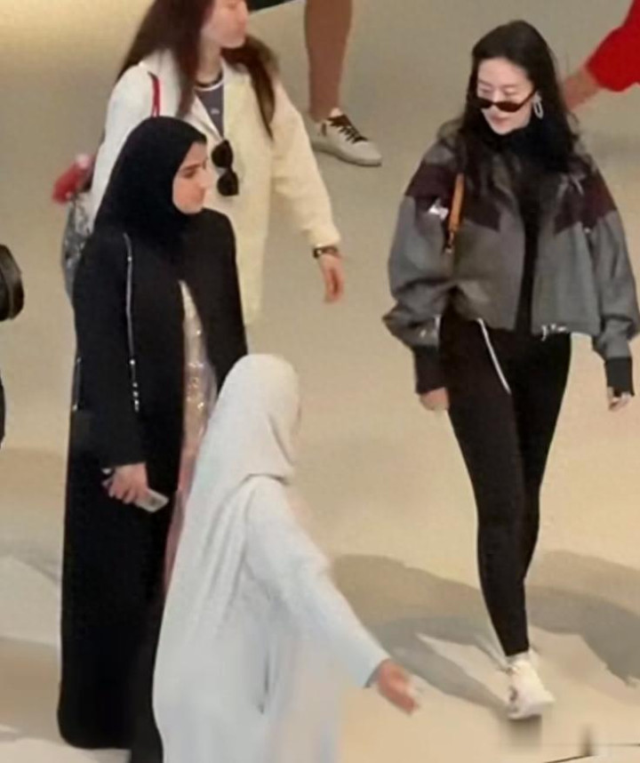 有网友在阿布扎比偶遇刘亦菲,并且晒出了他们在偶遇到刘亦菲时拍到的照片。照片中的刘亦菲穿着石灰色拼接棕色的夹克外套,搭配黑色的紧身打底裤与白色的运动鞋,看起来很有休闲风格,也略带几分酷飒。刘亦菲戴着墨镜,披散着长发,跟着工作人员往某个方向走。