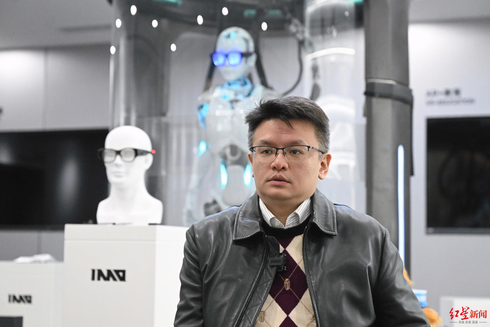 在深圳的展厅里,我们意外看到了两个“老朋友”——来自成都的熊猫“花花”和三星堆黄金面具。它们以展板形式趴在展柜上,仿佛在异乡等待家乡来客。“这些都是我们在成都落地场景的见证者。”影目科技运营中心副总裁印传学解释。他随手拿起一副眼镜,“这些功能迭代,就是成都团队提出的需求。”